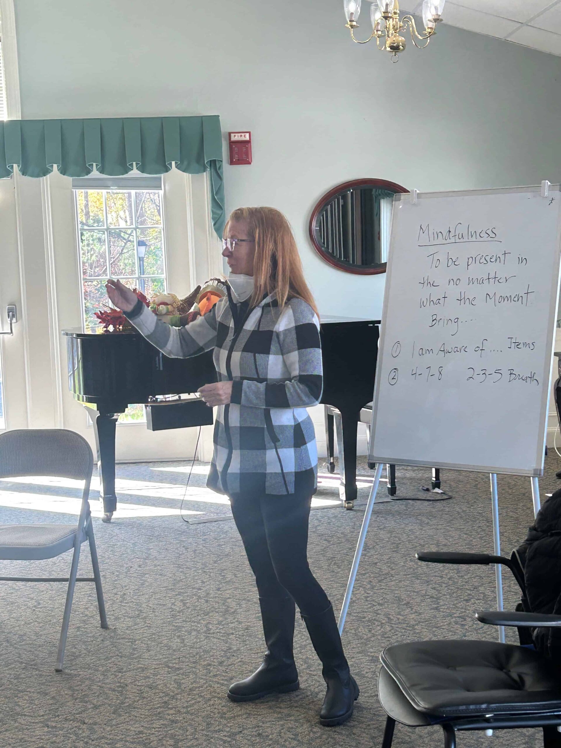 On Saturday, November 1, nonprofit UYM Charities (UYM) hosted its first Aging Well ‘Pop-Up’ for 15 older adult residents at Webster at Rye. The pop-up featured a 45-minute mindfulness program led by integrative holistic life coach and mindfulness teacher Gi Indoccio, LCMHC.